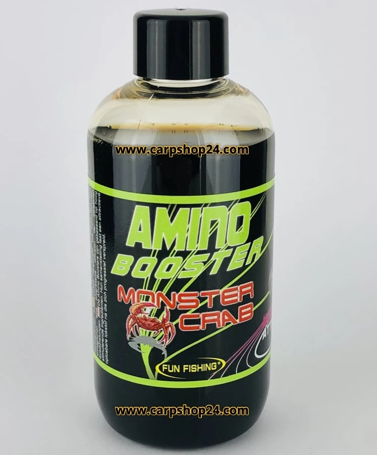 AMINO BOOSTERS zijn lokstoffen voor geleidelijke diffusie die een sterke aantrekkingskracht uitoefenen op de reuk- en smaakzintuigen van vissen. De fruitige versies zijn gemaakt van hightech oplosbare lokstoffen zoals N.H.D.C. of natuurlijke fruitextracten. De vleesversies zijn rijk aan oplosbare natuurlijke mariene extracten (krab, mossel, krill …) met een hoog gehalte aan vrije aminozuren. We kunnen je verzekeren dat onze boosters echt het verschil maken.