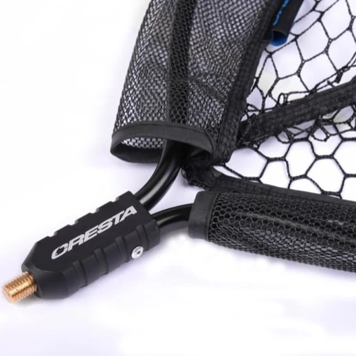 Deze Cresta schepnetten zijn speciaal ontworpen voor de karpervisserij. Het volledig CNC metalen spreidblok is voorzien van een gefreesd grip gedeelte, waardoor bij het optillen van grote vissen de steel kan worden ontzien. Het zachte, visvriendelijke net met 20mm maaswijdte is met behulp van een fijnmazig rubbermesh aan de metalen beugel gemonteerd. Hierdoor glijdt elke vis veilig over de netrand. De extra diepte in combinatie met het verkleinde bodemoppervlak, zorgt ervoor dat het net gemakkelijk door het water manoeuvreert en de vis compact in het net komt te liggen.