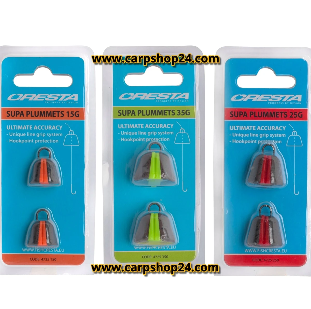 De Supa Plummets zijn met afstand de beste peilloden ooit. De unieke zachte insert bezit over de volledige hoogte een inkeping waar de lijn en de haak in getrokken kan worden. Dit resulteert in de perfecte montage om โstaande haakโ op de dobberantenne te kunnen uitpeilen. Terwijl de bodemstructuur zichtbaar wordt, blijft de haakpunt volledig afgeschermd en kan deze nooit met het metaal in aanraking komen. Het grote oog maakt het gemakkelijk om elke formaat haak al dan niet voorzien van baitband te monteren. Het allergrootste voordeel is nog wel dat de Supa Plummet in elke positie op de lijn boven de haak geplaatst kan worden. Hierdoor is het mogelijk om ook de gewenste overdiepte op de dobberantenne uit te loden. Meer precisie bestaat niet! De 15gr uitvoering is voor dunnere elastieken, terwijl de 25 en 35gr bedoeld zijn voor gebruik in combinatie met dikkere en/of holle elastiek in de hengeltop.ย ย