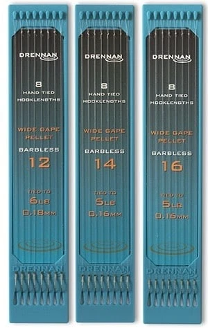Drennan Wide Gape Pellet Barbless Hooklengths 6″ – 15cm – Onderlijnen