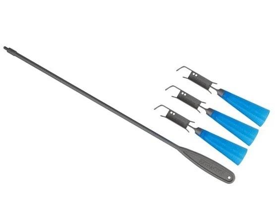 De taps toelopende kegels op de vier maten stop hebben elk een geribbeld gedeelte dat kan worden afgesneden met een scherp mes of een junior ijzerzaag. Deze eenvoudige aanpassing geeft elke maat een maximale en minimale diameter. Het assortiment kan daarom worden aangepast aan alle stoksecties en topkits met een interne boring tussen 10 mm en 30 mm.