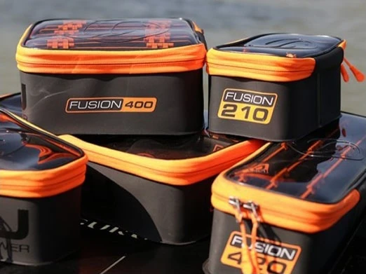 Deze uitgebreide range van opbergtassen en bait bowls mag bij geen enkele visser meer ontbreken! De tassen zijn allemaal gemaakt van hoogwaardig EVA materiaal dat 100% waterdicht is. Daarnaast zijn de Fusion 110, 150, 210, 400, 420, 800 en Catapult Bag voorzien van een handige getinte deksel welke eenvoudig dicht geritst kan worden om zo kostbaarheden of aas tegen weer en wind te beschermen.