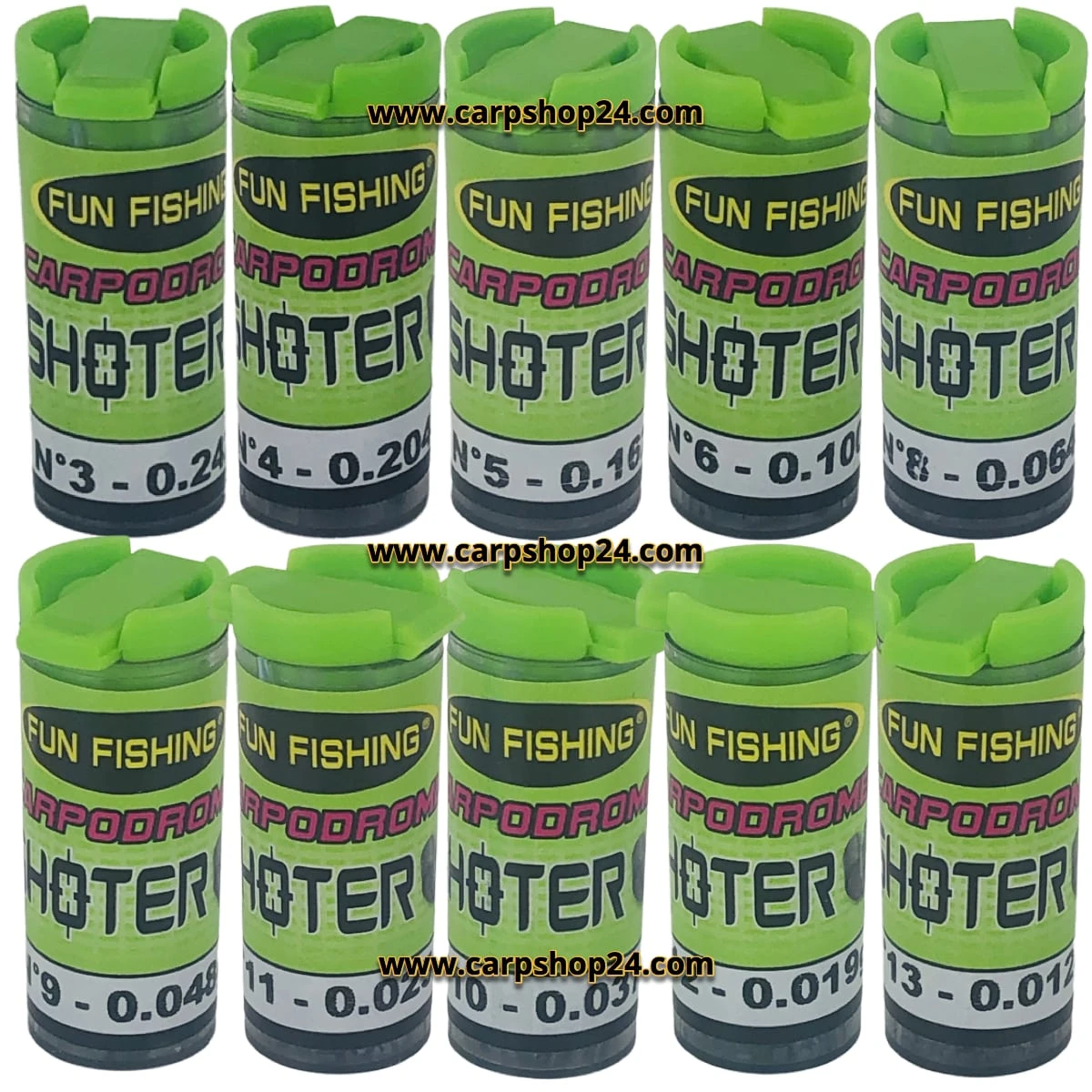 De Shoters zijn ultrakalibreerde cilindrische zinkers bedoeld voor het vissen in carpodrome of in traditionele competitie. Ze hebben een zeer diepe afgeschuinde groef waardoor ze gemakkelijker te plaatsen zijn en een uitstekende grip op de draad garanderen, ook bij grote diameters (dit voorkomt dat ze verloren gaan in gewelddadige gevechten). Gemaakt van tin, niet van lood, zijn de Shoters beide milieuvriendelijker en kunnen ze gemakkelijk langs de lijn worden verplaatst zonder deze te beschadigen. Dankzij hun vorm zijn ze ook gemakkelijker te verwijderen.