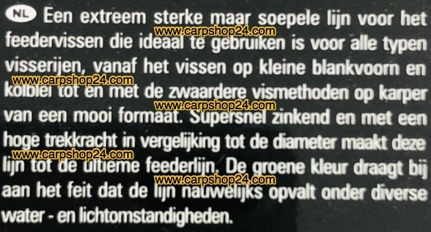 Dit is een supersnel zinkende haspellijn die extra sterk is vanwege zijn diameter.ย Het is echt de ultieme feedervislijn.