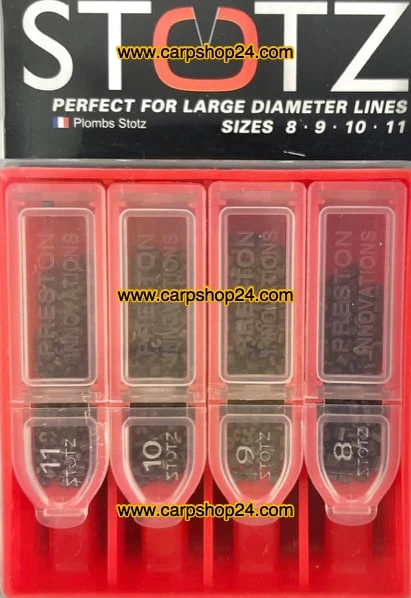 Stotz is een hybride shot dat is ontworpen voor gebruik op lijnen met een grotere diameter (ze werken ook perfect op fijne diameters). Door de brede groef zijn ze snel en eenvoudig op de lijn te plaatsen. Een ander voordeel is het grotere oppervlak dat de lijn vastgrijpt. Dit voorkomt schade en voorkomt ook dat de Stotz onder spanning pingelt. De platte uiteinden van Stotz produceren een nette massa wanneer ze samen worden gegroepeerd.